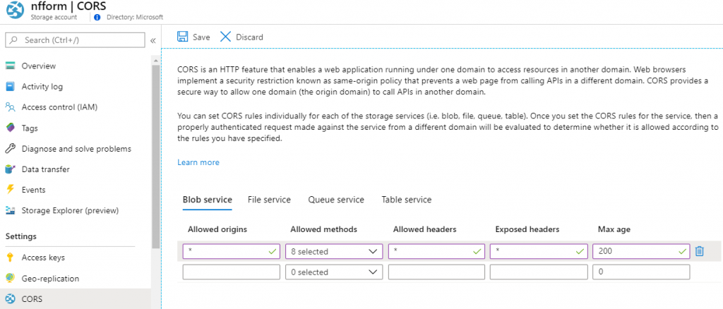 Provide all the necessary details to connect your blob storage account and connect it to the forms endpoint we created earlier. Finally, hit save project.