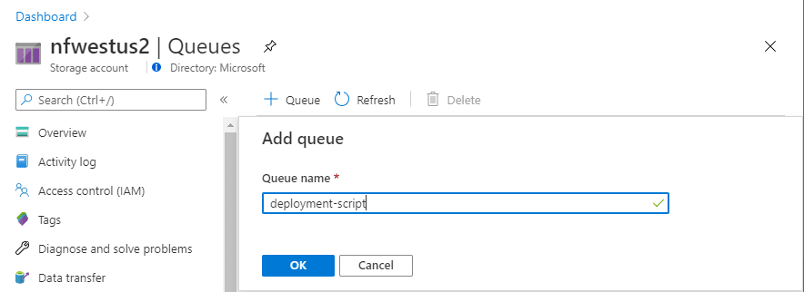 Next, we’ll provide this managed identity access to our queue. Let’s first create a new queue: